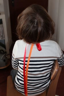 J’avais au préalable choisi de ne vous montrer l’objet qu’au cou d’une poupée. Mais j’ai finalement estimé qu’il méritait la mise en situation au cou de son véritable récipiendaire, j’ai nommé mon Aînée.