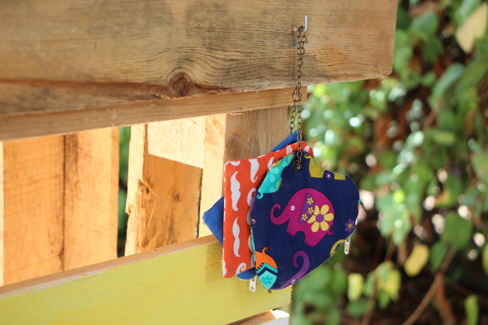 Alors on a inventé ensemble ce système de multiples pochettes, simplement percées d’un œillet et reliées entre elles par une petite chaîne.